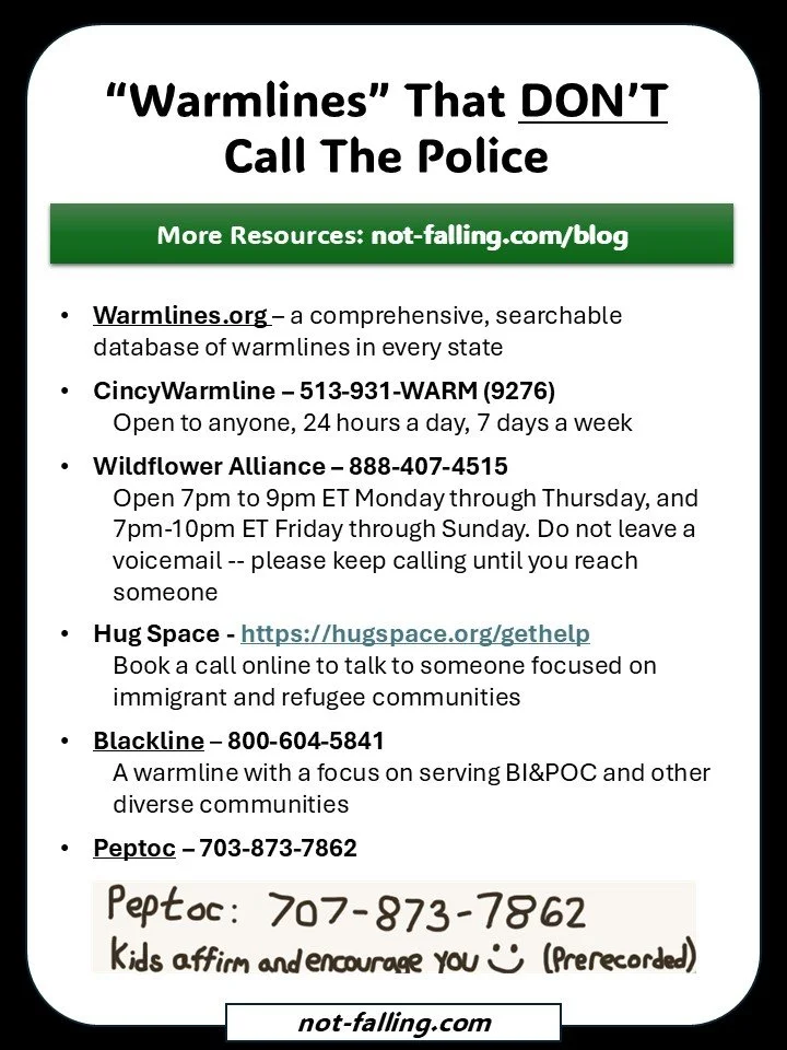 Warmlines: A Way to Seek Help WITHOUT Getting Reported to the Police